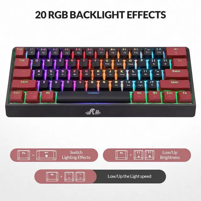 RGB backlit: 20 RGB backlight effects, 5 brightness and speed settings. Switch lighting modes effortlessly to match your mood and environmentcrafting a truly unique gaming experience. Enjoy more fun while gaming or typing at night