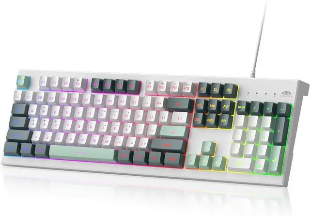 Comfortable Typing Experience and Full 104 Keys Anti-ghostingMageGee blue white keyboard, that responds fast with no lag, this gaming keyboard and mouse combo will offer you wonderful tactile feedback on each keypress. The stepped layout can also provide you with an ergonomic angle for typing. Advanced anti-ghosting technology allows all 104 keys to work simultaneously to provide a fast typing response.
