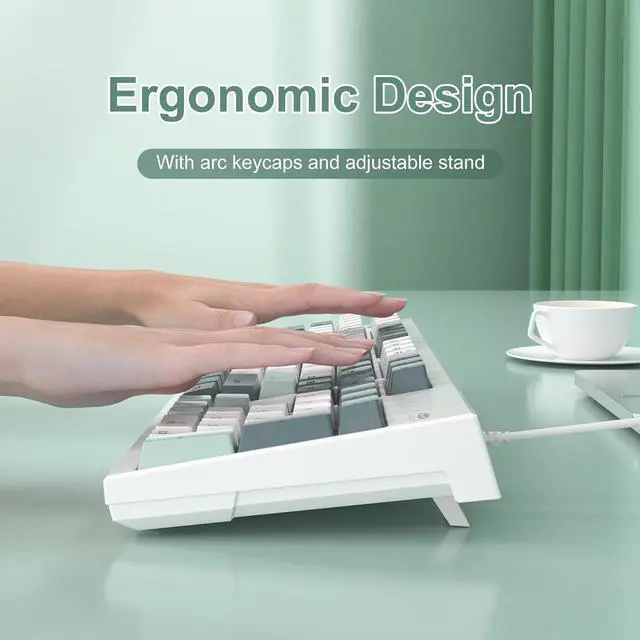 Ergonomically Designed Gaming Work KeyboardCarefully designed ergonomic high and low keys, suitable for long hours of hand tapping and typing, comfortable finger movement, smooth input without lag. By FN+F1-F12 combination. Quickly switch between multimedia playback, volume adjustment and other functions Convenient and fast!