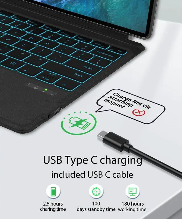 7-Color Backlight & Long Battery Life: 7 vibrant backlit colors with 3 brightness levels for choose, ensuring visibility and comfort in low-light environments. The built-in 750mAh rechargeable battery provides up to 180 hours of usage without backlight. Our Surface pro 7 keyboard enters sleep mode after 15 minutes of inactivity, standby time of up to 100 days
