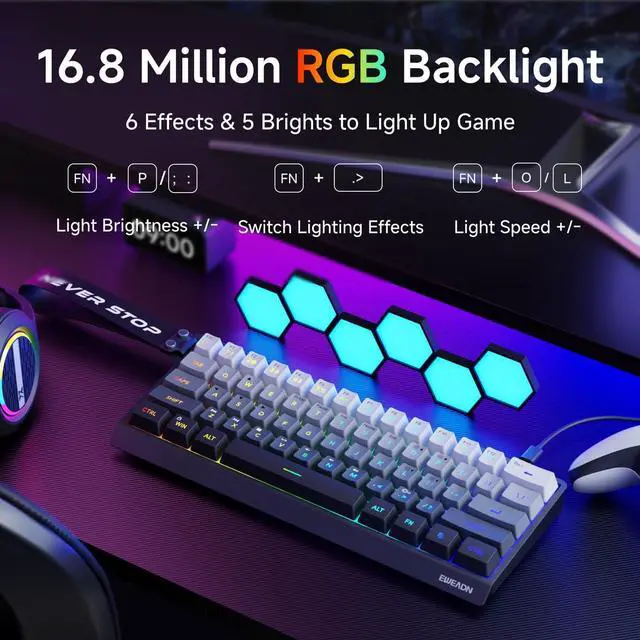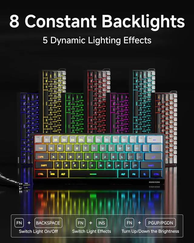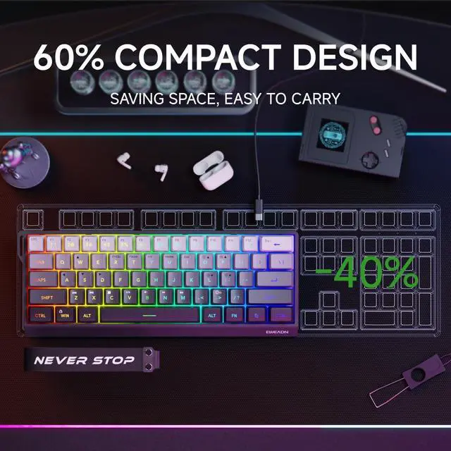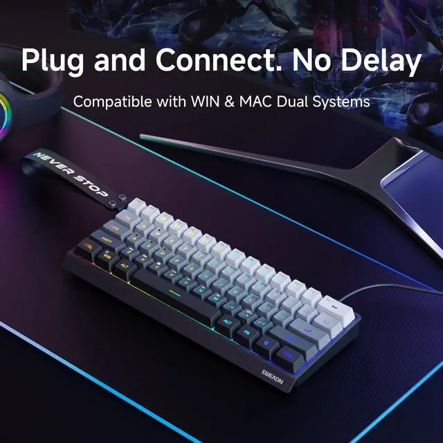 Design: The EWEADN F61' s space-saving 60% layout packs everything you need into a 60% gaming keyboard wired. It' s perfect for gaming, office work, or travel, clearing up your desk space without losing the keys you use most. Fit for gamers and everyday typists alike