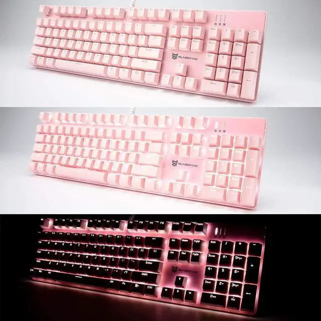 -: Our Gaming keyboard mechanical has different backlit modes can be adjusted through FN keys combination. Our mac keyboard pink keycaps backlit modes can be customized easily without installing software, it is a great choice to DIY your stylish rgb keyboard and cherry keyboard. This silent mechanical keyboard has soft keys travel makes every click easy to register. Our blue switches keyboard is a bit quiet mechanical keyboard and noiseless.