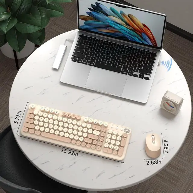 Elevate Your Workspace: Step into a perfect blend of nostalgia and modern sophistication. Our typewriter-inspired keyboard features a striking dual-tone color block design that adds a touch of vintage charm to any desk. Paired with a sleek, matching mouse, this combo transforms your standard setup into a stylish and productive retro haven.