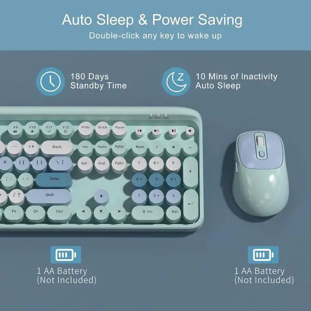 Auto-Hibernation Function: The keyboard and mouse will automatically go into hibernation after 10 minutes of inactivity, and will automatically return to work when any key is pressed. The auto-sleep function protects the battery life and supports long time usage.