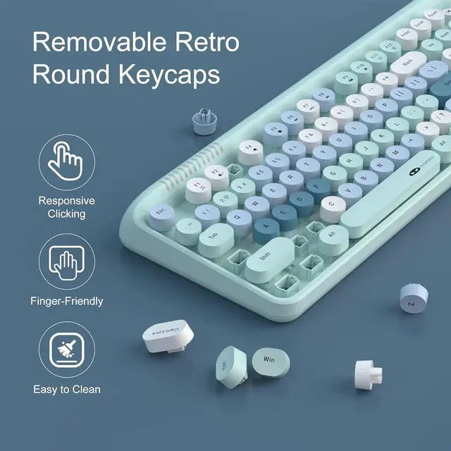 Stylish keycaps and keyboard design: 104-key full layout keyboard with round punk keycaps, retro aesthetics, keycaps are made of ABS material, which can improve the life of the keycaps, comfortable typing feel, convenient and simple, keyboard design ergonomic, can enjoy typing more comfortable feeling