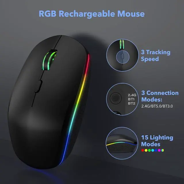 BLUETOOTH DESIGN: To meet the needs of Apple users, it has three connection methods ( 2.4GH z+BT 3.0 +BT 5.0 ), which can connect three devices at the same time and switch between the three devices at will. compatible with 99% of devices and operating systems (MacBook Pro/Air, iPad, iMac, iOS, Android, Ipad, etc. ).