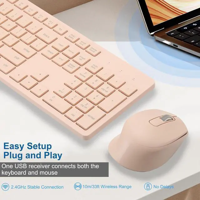 Stable 2.4G Wireless Plug and play Simply connect wireless keyboard and mouse with a USB receiver (INCLUDED in mouses battery compartment), for saving USB port of your computer. No delays or dropouts. Allows reliable wireless connection up to 10 meters (33 ft) without any driver.