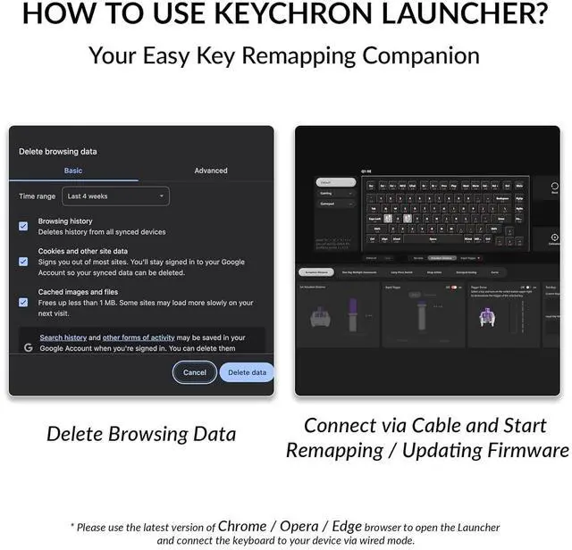 Program with Launcher: With the Keychron Launcher web app, you can fully customize your keyboard. Remap keys, fine-tune actuation points, configure the magnetic switches, and create personalized macros, shortcuts, and key combinations for each key.
