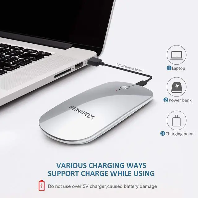 EASY to OPERATE: There just need three steps to connect devices that support bluetooth mouse. And more clear indicator. There has power signal light, pairing signal light, DPI signal light, low battery signal light and charging signal light. Finally, this mouse can be used normally when it charging