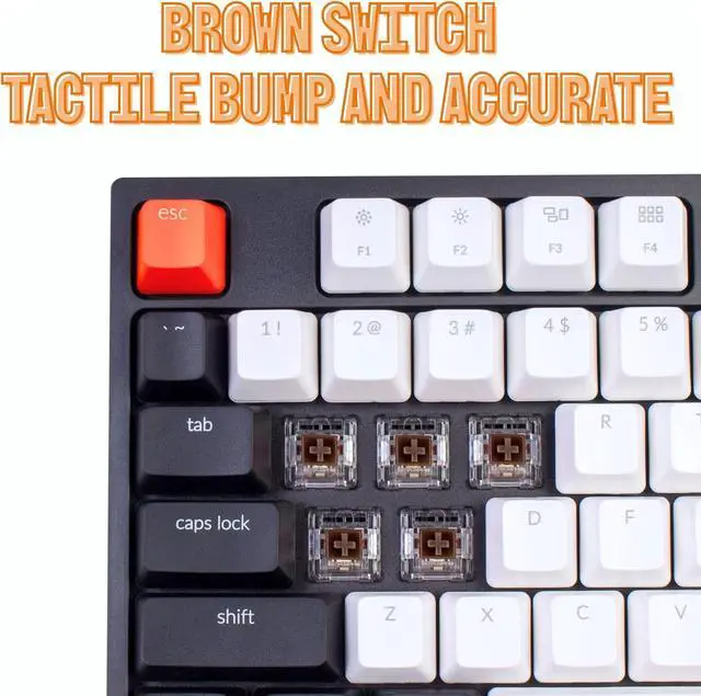 With a layout optimized for Mac, the C2 has all necessary multimedia and function keys (Num Lock works with Windows only), while compatible with Windows, and comes with a dedicated Siri or Cortana key. Extra keycaps for both Mac and Windows operating systems are included.