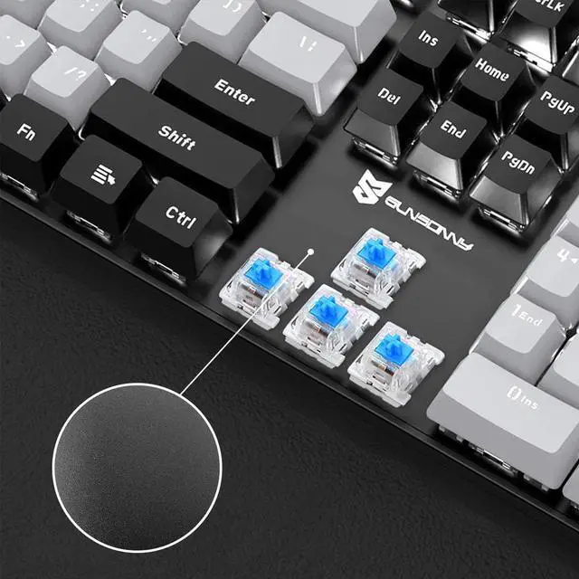 : The blue switches of gaming keyboards provide a distinct tactile feedback with a noticeable click sound when the key is actuated. The tactile bump and audible click from Blue switches of our mechanical keyboard deliver an exceptional typing and gaming experience, especially for users who prefer clear actuation feedback. Compared to quieter switches like Brown, Blue switche offer more pronounced response, making them ideal for accurate typing tasks.
