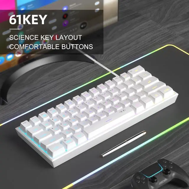 Classic 60% Compact Layout KeyboardThis 60% gaming keyboard has a perfect size and it' s good for Home and Office use, without Numpad, more practical for Gamers and Typist, give more space to your desktop.