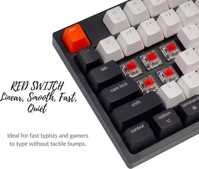 Linear red switches deliver a silky-smooth linear feel with minimal noise, making every keystroke fast and effortless - ideal for rapid typing, coding, or competitive gaming without distractions.