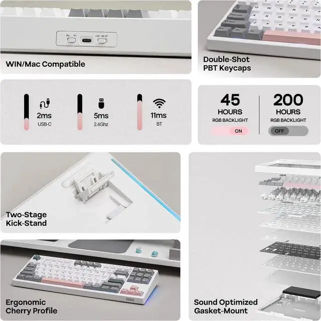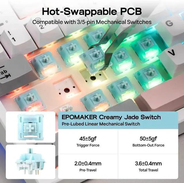 Switch Type: 5-pin Mechanical Switch, Silent, Linear, Pre-Lubed