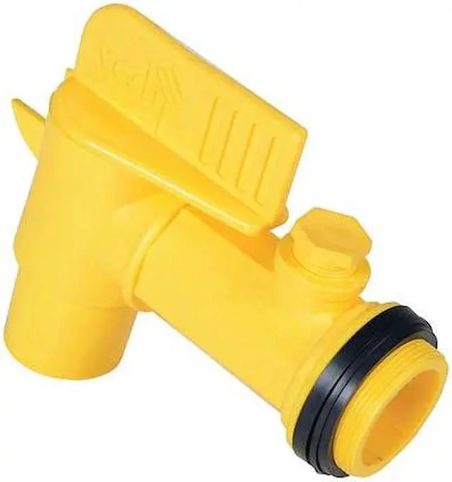 Drum Faucet, Manual Close, Non-Adjustable, Polyethylene, (M) NPT Inlet (In) 2, EPDM Seal Material, Manual Closing with Gasket, Yellow, For Use With Nonflammable Liquids, with Viscosity, and Some Corrosive Properties, Includes Padlock Hole and Pail Hook. This item has been restricted from sale in the following state (s): []