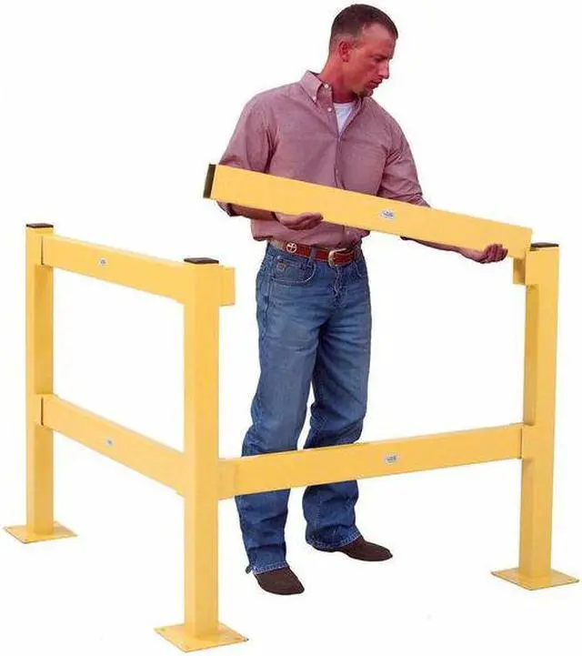 Guard Rail, Material Steel, Guard Rail Mounting Style Lift Out, Finish Powder Coated, Yellow, Overall Height 4 in, Number of Ribs Not Applicable, Overall Length 7 3/4 ft, Net Weight 37 lb, Includes Not Applicable. This item has been restricted from sale in the following state (s): []