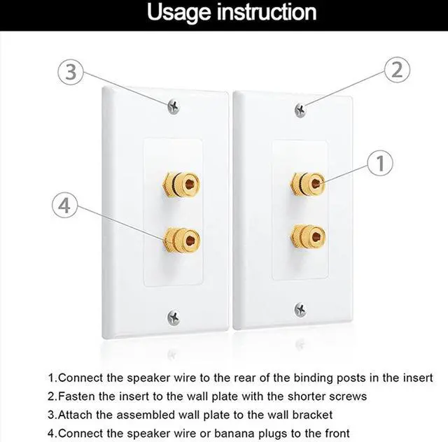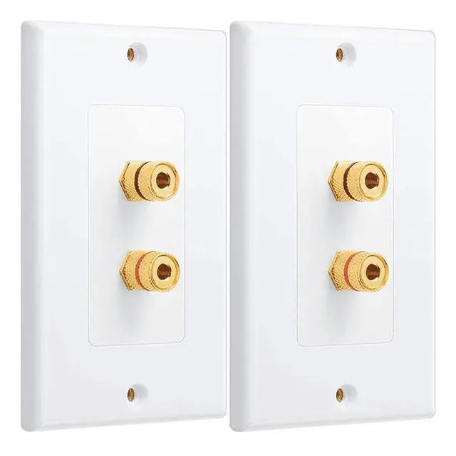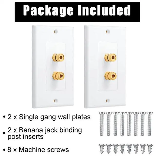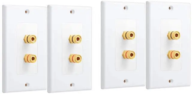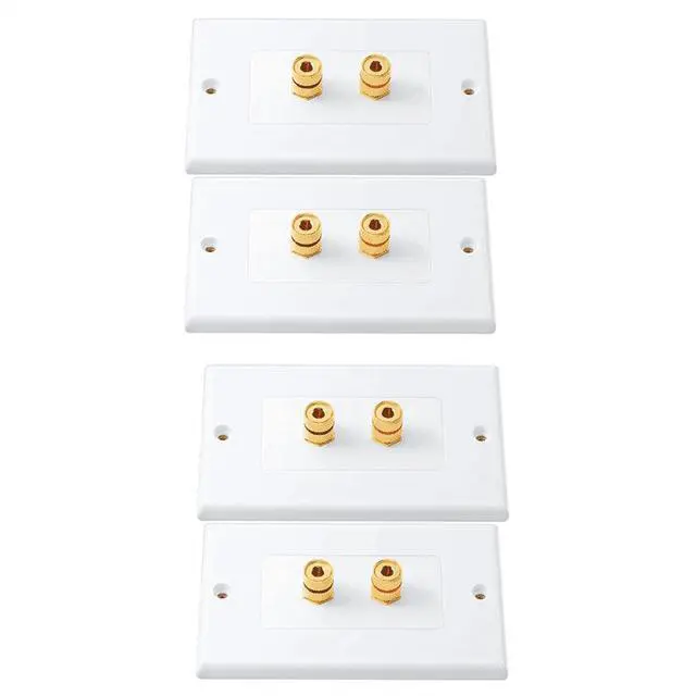 4 Pack Single Gang 1.0 Speaker Wire Wall Plate (Banana Plug Wall Plate) for 1.0 Speaker, White,4 x Single gang wall plates 4 x Banana jack binding post inserts 16 x Machine screws,white