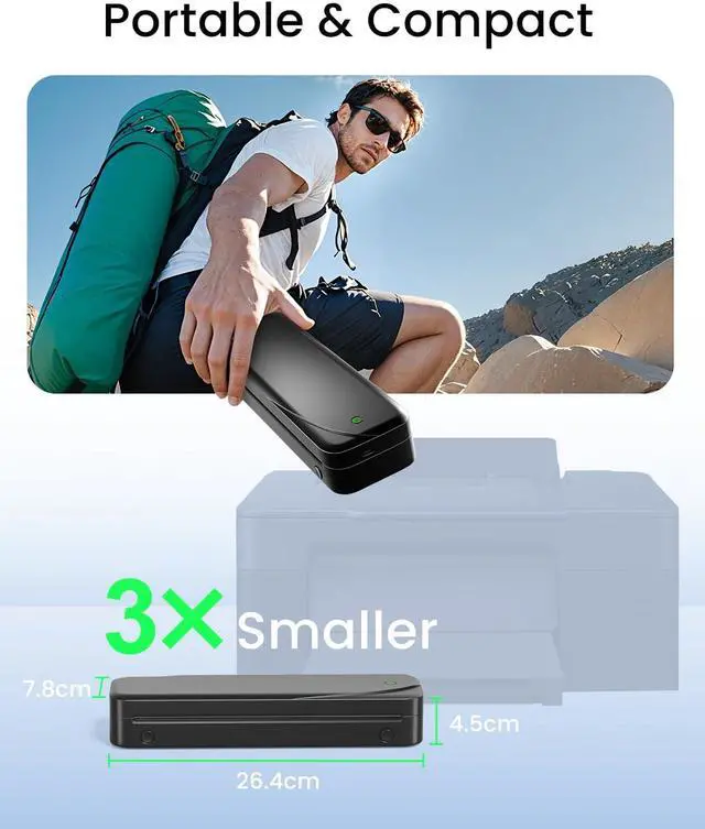 Portable Design: Our portable thermal printer weighs only 690g (1.5lb), this mobile printer for vehicles is compact enough to fit in your backpack like a water bottle, making it perfect for on-the-go printing during business trips or remote work, eliminating the stress of being unable to print documents while traveling