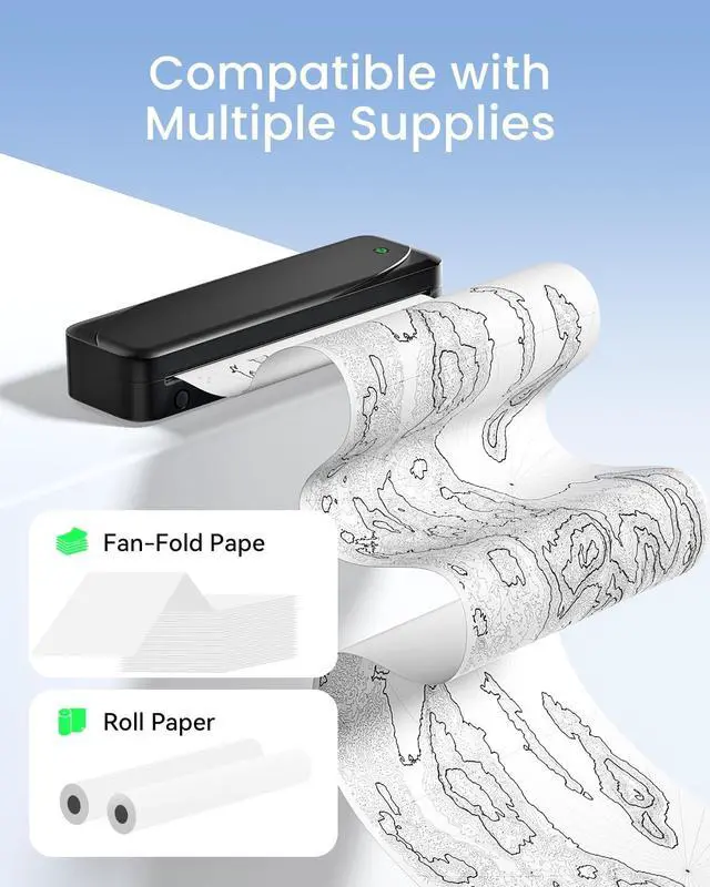 Wide Compatibility: Our 8.5 x 11 thermal printer supports a variety of paper sizes, including 216mm (letter size), 210mm (A4), 110mm (4.33 inches), 80mm (3.14 inches), and 53mm (2.08 inches). This travel printer is compatible with both Android and iOS devices, making it easy to print from any gadget with just a simple "eprinter" app download. Note: You need to download the driver before printing from a laptop or PC
