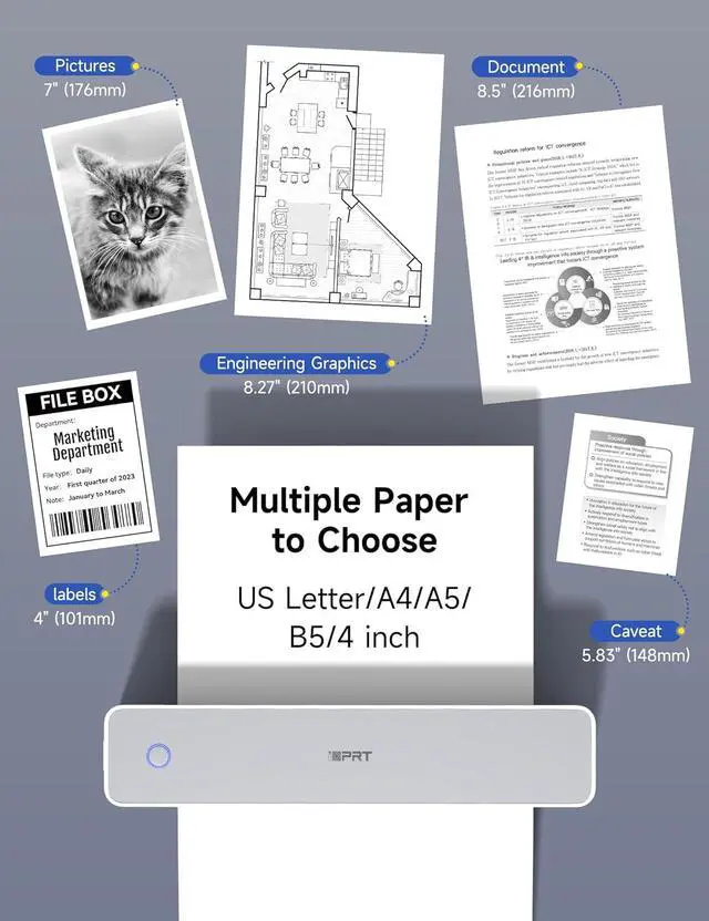 INKLESS PRINTINGiDPRT MT888 portable A4 thermal printer uses advanced thermal technology. Say goodbye to expensive ink, toner or ribbons, and eliminate clogging and cleaning problems. This technology achieves high-speed printing, you can print more economically and environmentally friendly.NOTE: Inkless printer is a thermal printer and only supports thermal printing paper, not support regular copy paper.