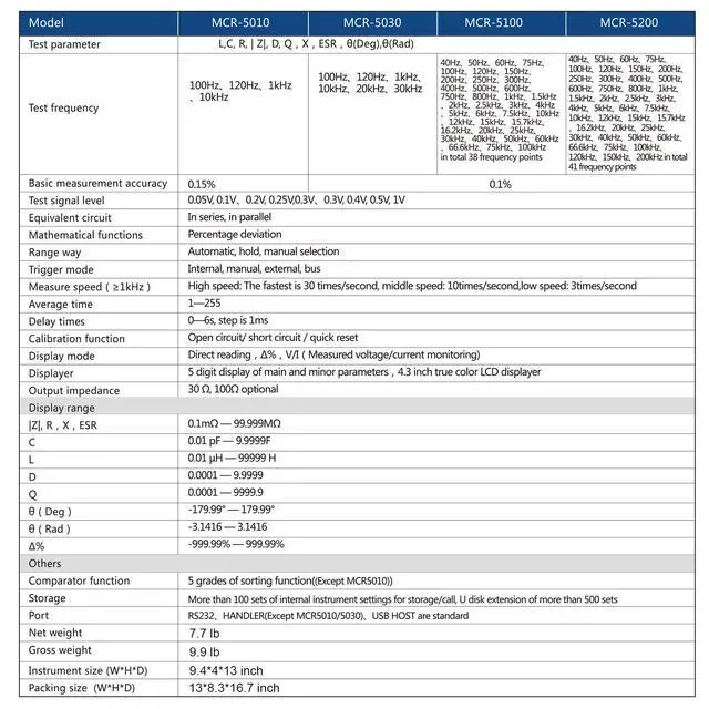 - A new generation of high precision and high stability of boutique MCR meter is MCR5010, MCR5100,MCR5200, the 4.3 inch 480*272 TFT display screen, display classical and intuitionistic.