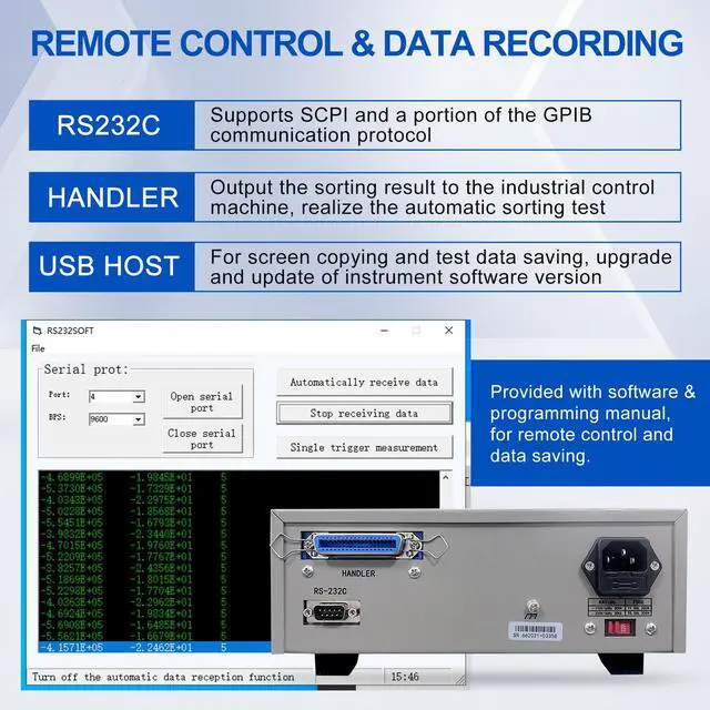 Up to 500 sets of test data can be expanded, and the software version of the instrument can be upgraded and updated via USB flash drive
