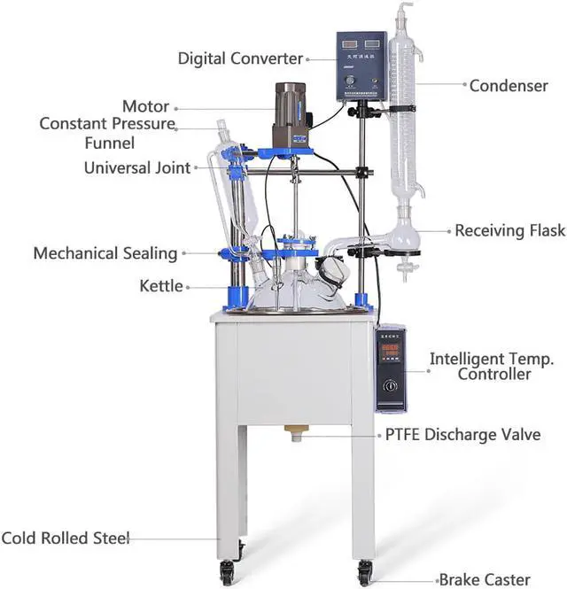 Single layer glass reactor is a closed equipment which can do all kinds of biochemical and synthesis reactions, like distillation, reflux, stirring etc. at a constant temperature condition.