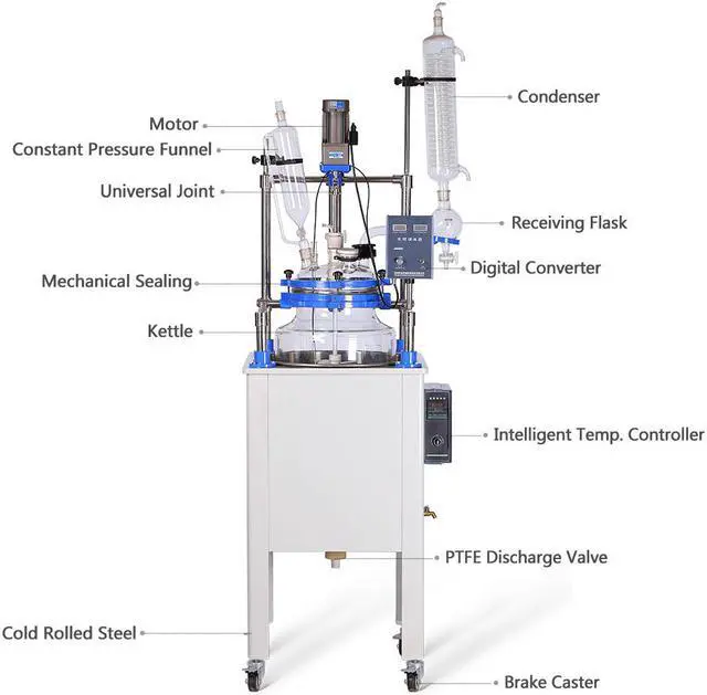 Single layer glass reactor is a closed equipment which can do all kinds of biochemical and synthesis reactions, like distillation, reflux, stirring etc. at a constant temperature condition.