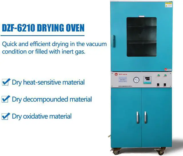 The vacuum drying oven is specially designed for drying materials that are sensitive to heat or easy to decompose and oxidize. Application ·Laboratories R&D, Colleges teaching ·Chemical and Pharmaceutical industries ·Food Dehydrating ·Electronic Drying Features 1. Cuboid chamber maximizes effective volume. Inner chamber visible through High strength explosion-proof glass door. 2. Accurate and