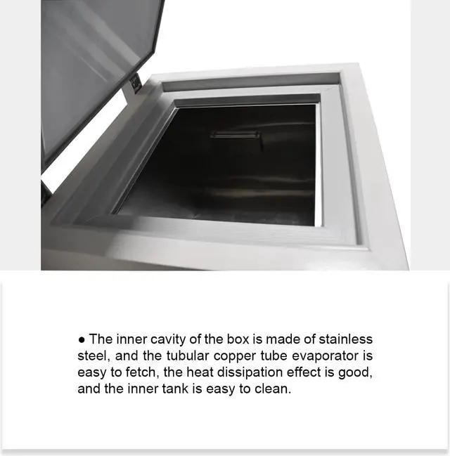 •The inner cavity of the box is made of stainless steel, and the tubular copper tube evaporator is easy to fetch, the heat dissipation effect is good, and the inner tank is easy to clean.