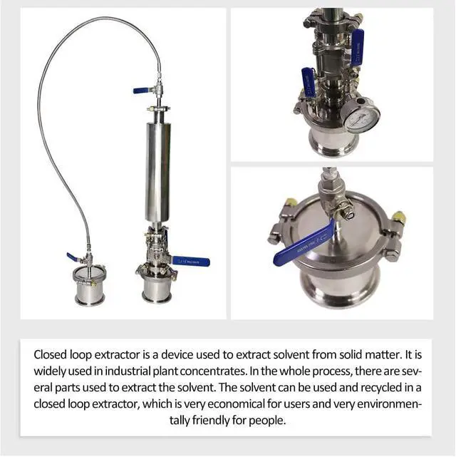 Closed-loop extractor is a device used to extract solvent from solid matter. It is widely used in industrial plant concentrates. In the whole process, there are several parts used to extract the solvent. The solvent can be used and recycled in a closed-loop extractor.
