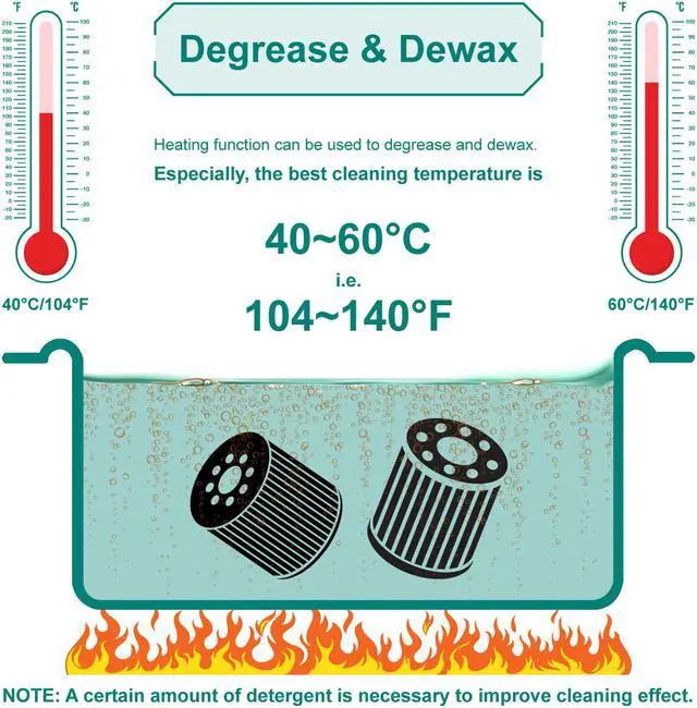 Fifth, 20~80°C/68~176°F heating range to degrease and dewax.