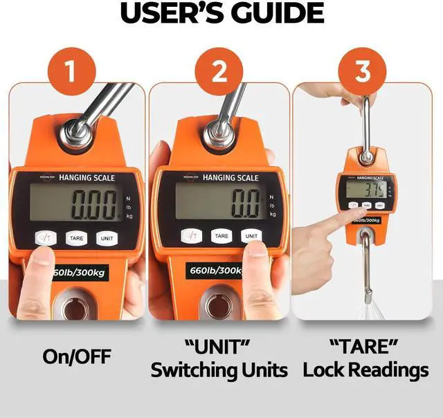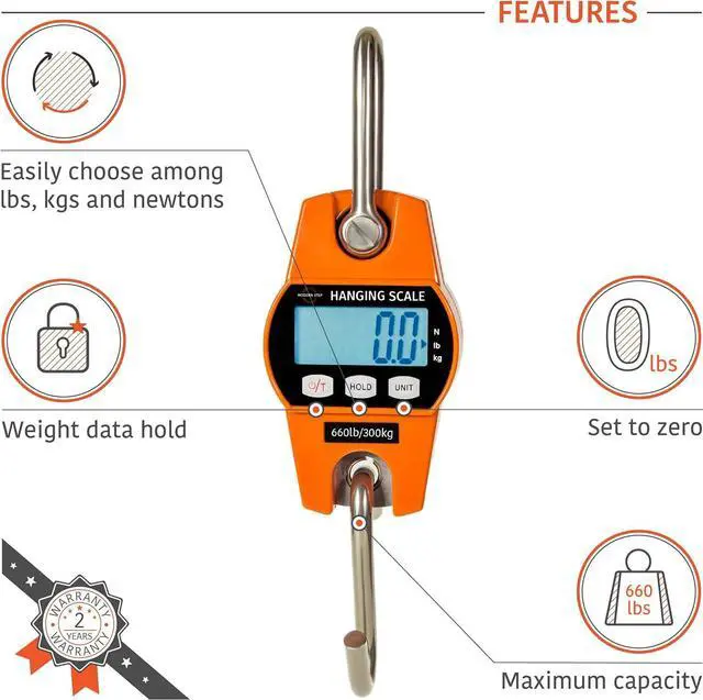 The scale is designed with a smooth dismount stainless steel hook and shackle for easy cleaning and maintenance. When the capacity is surpassed, the scale will alert you with a safe overload indication.