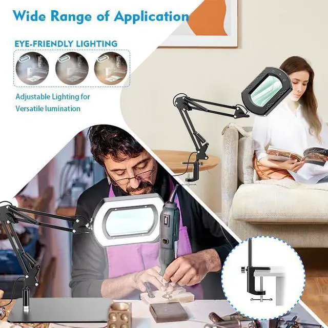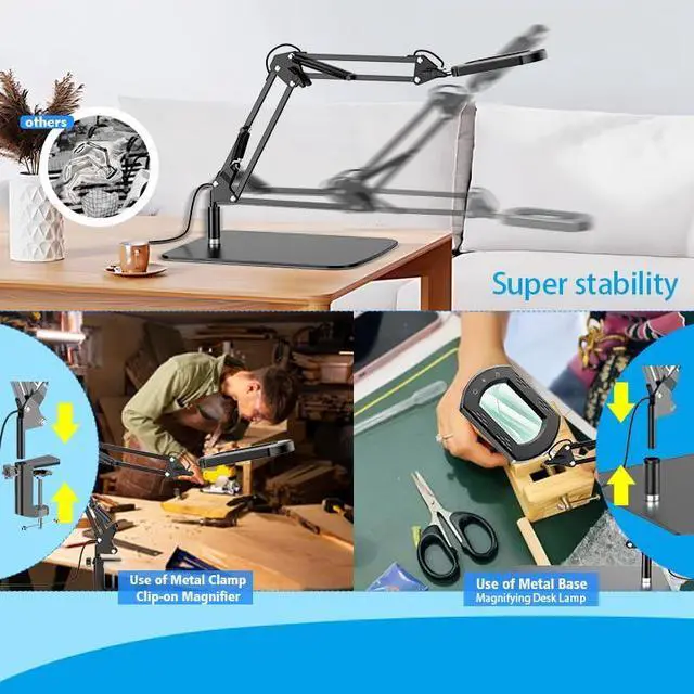 Stable Metal Base + Clamp Option for Versatile Setup Choose from a heavy metal base for desktop stability or a secure clamp mount for spacesaving setups. Perfect for small work areas, workshops, offices, studios, and bedside reading.