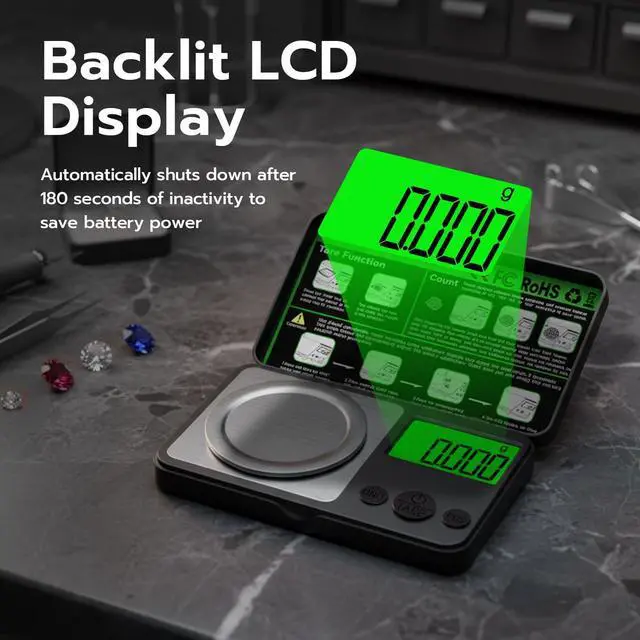 Clear and Convenient Display: Equipped with a backlit LCD screen, this scale provides easy-to-read results in any lighting conditions. It features an auto shut-off function after 180 seconds of inactivity to save power, so you can focus on your measurements.