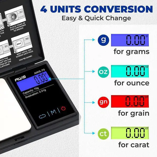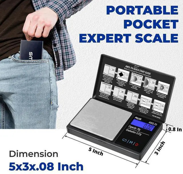 This checkbook size scale offers great range from 70 grams to as little as 0.01 of a gram. You get all this in one scale backed up with our incredible 10 year warranty! Whether this fits your style or needs - the AMW Series is the portable pocket scale that packs punch and gets the job done!