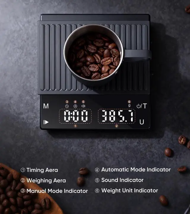 Smart Coffee Scale: Stop Guessing, Start Brewing with Precision! This smart espresso scale features three instant-switch units (oz/ml/lb/g/lb:oz/fl:oz) to perfectly measure your coffee, no matter your recipe. With dual timers (Auto/Manual), brew like a pro. Start the auto-timer the moment extraction begins for perfect timing, or use manual mode to log your unique recipes with ease