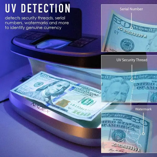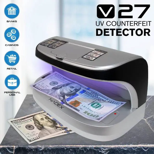 Nadex V27 Desktop UV Counterfeit Detector with Micro Print Magnifier - UV/Magnetic/Infrared Sensor Detection