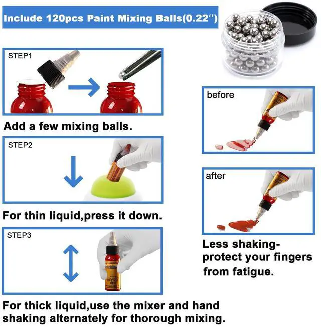 When mixing pigments or nail polish with high concentrations,add our small steel balls,so that the mixing gets them even smoother,it is also possible to obtain a homogeneous liquid more quickly.