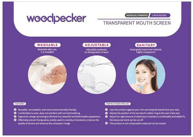 Clear Face Mask, Transparent Mouth Shield for Communication, Reusable Anti-Fog Clear Mask for Food , Dental, Beauty, Teaching.