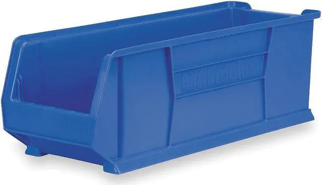 Hopper Bin, Outside Length 29 7/8 in, Outside Width 11 in, Outside Height 10 in, Inside Length 26 3/4 in, Inside Width 9 in, Inside Height 9 1/8 in, Volume Capacity 1.29 cu ft, Load Capacity 150 lb, Material Industrial Grade Polymer, Color Blue, Use with Grainger Divider No. 3HRW6 and 3HRW7, No. of Divider Slots Long 3, Includes Label Area on Front of Bin, ESD Conductive No. This item has been restricted from sale in the following state (s): []