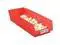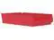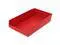Constructed from durable plastic material in a vibrant red color, this shelf storage bin is built to withstand the demands associated with regular use while providing easy identification due to its distinct hue. It features a molded-in label area and includes a label holder that aids organization by allowing clear marking for contents identification. Despite not having divider slots, it has been designed to hold up to a load capacity of twenty pounds.