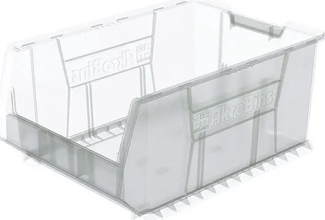 The AKRO-MILS - 30288SCLAR Storage Bin provides ample storage space with an inside length of 20 3/4 in, width of 14 3/8 in, and a height of 10 1/8 in. This sizable bin is designed to be stationary with an overall measurement of L x W x H: 23 7/8 in L x16.5in W x11in H. It has a volume capacity of up to1.77 cu ft and can support a load capacity up to300 lb while its stacking capacity reaches150 lb.