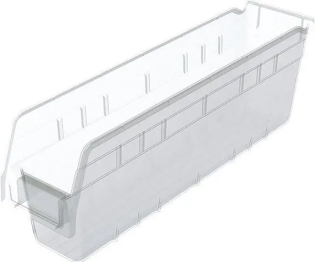 The AKRO-MILS - 30048SCLAR Shelf Storage Bin is a stationary storage solution built to accommodate various storage needs. With an inside height of 5 15/16 in, an inside length of 16 in and an inside width of 2 1/2 in, it provides ample space for items. Its overall dimensions are measured at 17 7/8 in L x 4 1/8 in W x 6 in H, giving it a volume capacity of approximately .16 cubic feet. Designed to be hangable and nestable, this shelf storage bin can optimize the use of your available space.