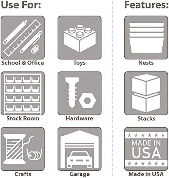 This hang and stack storage bin has been designed with flexibility in mind as it's both stackable and nestable when not in use, enabling space-efficient storage solutions. Despite its lightweight nature, it boasts an admirable load capacity of up to12 lbs and volume capacity reaching up to approximately .8 gallons. Please note that this item does not have ESD conductive properties.. This item has been restricted from sale in the following state(s): []
