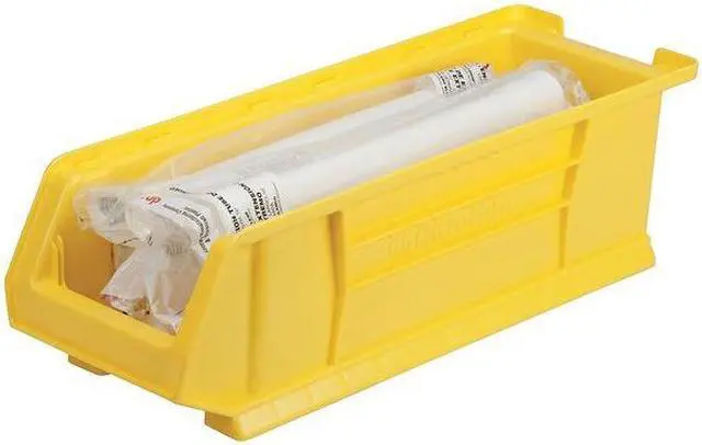 Super Size Bin, Color Yellow, Includes Dividers Dividers Not Included, Includes Label Holder Label Holder Included, Material Plastic, Overall Height 7 in, Overall Length 23 7/8 in, Overall Width 8 1/4 in, Stackable Stacking Capable, Weight Capacity 200 lb, Mobility Stationary, Number of Divider Slots 3, Number of Long Divider Slots 1, Number of Short Divider Slots 2, Number of Dividers Not Applicable, Caster Wheel Diameter Not Applicable, Divider Adjustment Increments Not Applicable. This item has been restricted from sale in the following state (s): []