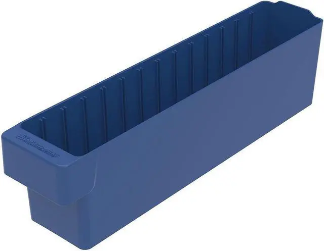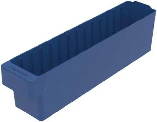Drawer Bin, Outside Length 17 5/8 in, Outside Width 3 3/4 in, Outside Height 4 5/8 in, Volume Capacity 0.14 cu ft, Load Capacity 20 lb, Material Industrial Grade Polymer, Color Blue, Use Divider No. Mfr. No. 41410, ESD Conductive No. This item has been restricted from sale in the following state (s): []