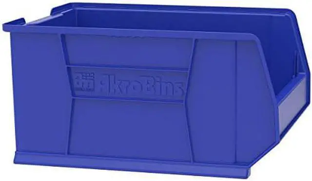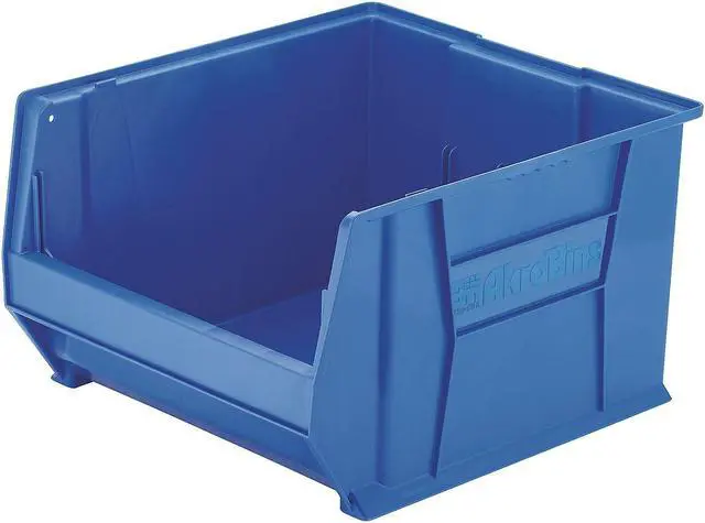 The AKRO-MILS - 30289BLUE Storage Bin is a sizable storage solution, designed with an inside width of 16 inches, an inside height of 11 1/8 inches, and an impressive inside length of 20 3/4 inches. These dimensions are suitable for accommodating various items while its overall size measures at approximately 23 7/8 in L x 18 1/4 in W x12 in H. This bin is built to handle substantial weight as it boasts a stacking capacity and load capacity both reaching up to a hefty 300 lb.