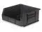 Constructed from robust plastic material, this hangable and stackable black storage bin offers durability while maintaining its lightweight properties. It features molded slots for ID labels along with a label holder that enhances organization capabilities by providing straightforward identification methods. Moreover, it has three divider slots which further aids in keeping your stored items systematically arranged.