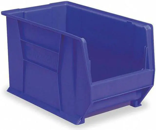 Constructed from durable plastic material, this blue storage bin is built to withstand up to a load capacity of as much as 200 lb while its stacking capacity reaches up to approximately forty lb. It's stackable design aids in maximizing space efficiency particularly where there's limited storage area. This item also includes features such as molded-in rear carry handle and label holder which makes handling and identification more convenient.